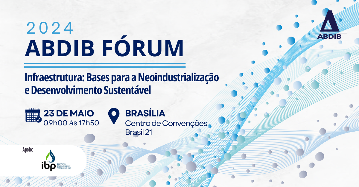 O Instituto Brasileiro de Petróleo e Gás (IBP) é um dos apoiadores do ABDIB FÓRUM 2024, o maior encontro da infraestrutura brasileira, que será realizado no dia 23 de maio em Brasília, e reunirá autoridades dos poderes Executivo, Legislativo e Judiciário, além de executivos das principais empresas do setor de infraestrutura, líderes e especialistas.